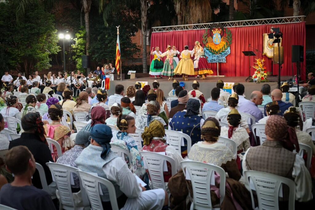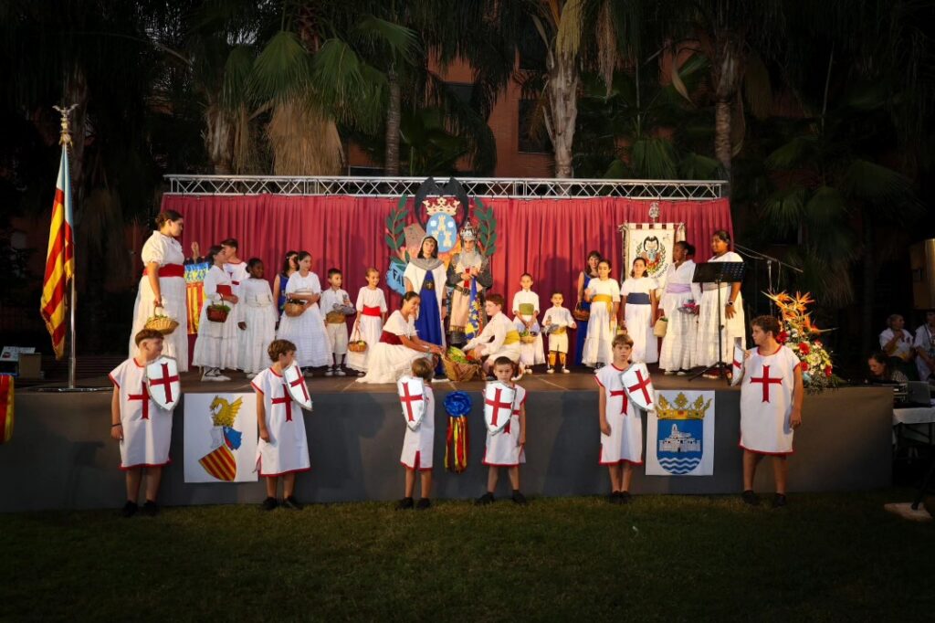 El homenaje estuvo acompañado de un variado repertorio cultural y festivo que emocionó al público asistente. El Grup de Ball El Granerer de la Falla Sants Patrons ofreció una dansa tradicional que rindió tributo a las raíces valencianas. A continuación, los falleros infantiles de la comisión representaron una teatralización y posteriormente representantes de la Falla Sants Patrons recitaron versos dedicados a la Real Senyera, poniendo palabras al sentimiento compartido de respeto, identidad y amor hacia nuestra bandera.