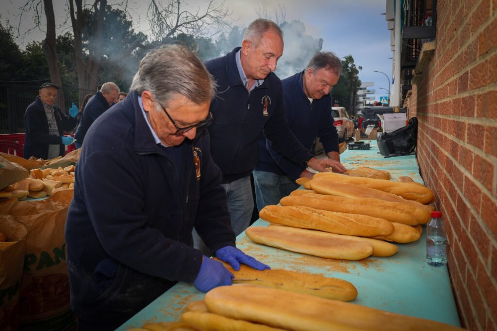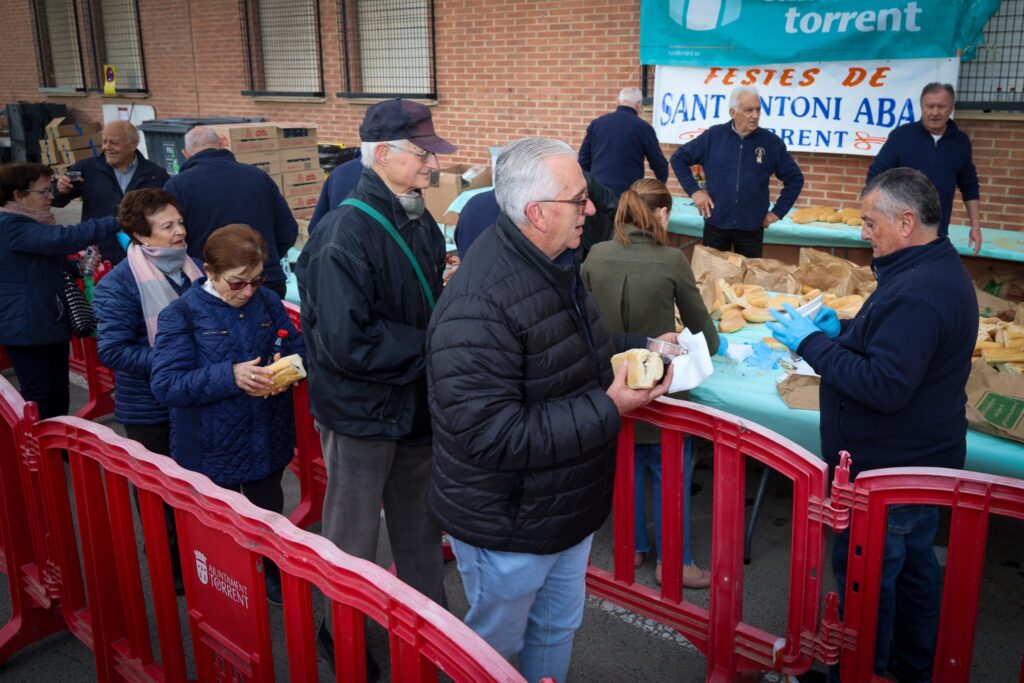 La jornada comenzó a las 10:00 horas en la avenida Padre Prudencio con el habitual almuerzo popular. Los festeros de Sant Antoni repartieron alrededor de 2.500 bocadillos de embutido entre los asistentes.