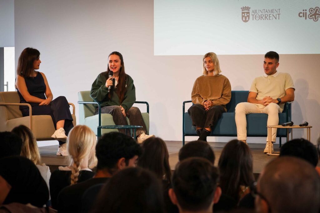 Para ello, el Centro de Información Juvenil ha invitado a los alumnos de primer curso de Bachillerato de los centros educativos de Torrent para disfrutar de esta jornada, que se ha alargado durante toda la mañana, en la que seis jóvenes torrentinos han expuesto sus diferentes trayectorias profesionales y de emprendimiento, de cierto éxito, para motivar y animar a los estudiantes a resolver sus dudas sobre el futuro laboral que se les aproxima. El evento ha estado moderado por la presentadora Ángela Velert, una joven periodista torrentina que cuenta con un Máster en Comunicación Corporativa.