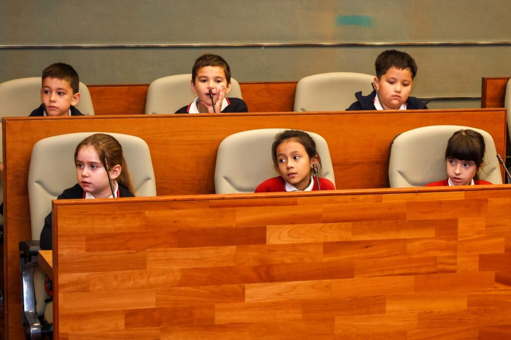 La alcaldesa inició el encuentro saludando a los niños y situándolos en el espacio municipal, “aquí donde estáis es el salón de plenos, donde nos reunimos todos los meses las 25 personas que han elegido los ciudadanos mayores de 18 años. Vosotros todavía no podéis votar, pero dentro de poco sí. Aquí decidimos cosas importantes para toda la ciudad, desde los más pequeños como vosotros hasta los más mayores”.