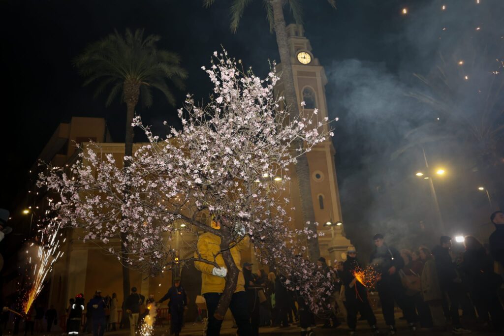 Ya por la noche, tras la oración celebrada en la Parroquia de San Luis Bertrán, dio comienzo la tradicional passejà, en la que clavarios y participantes recorrieron las calles acompañados por la banda de música y alumbrados por los característicos cohetes sujetos con pinzas. El recorrido finalizó en la Parroquia de la Asunción de Nuestra Señora, donde el párroco, D. Jesús Corbí, bendijo la rama de almendro, que fue ofrecida a la Virgen del Rosario, en uno de los momentos más emotivos de la jornada.