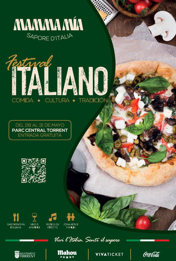 L’Ajuntament de Torrent presenta un dels esdeveniments més ambiciosos, innovadors i atractius de la seua agenda cultural: “Mamma Mia, Sapore d’Itàlia & All Star Cheesecake”, un festival únic que convertirà la ciutat en l’epicentre de la gastronomia, l’espectacle i l’oci del 28 al 31 de maig en el Parc Central.