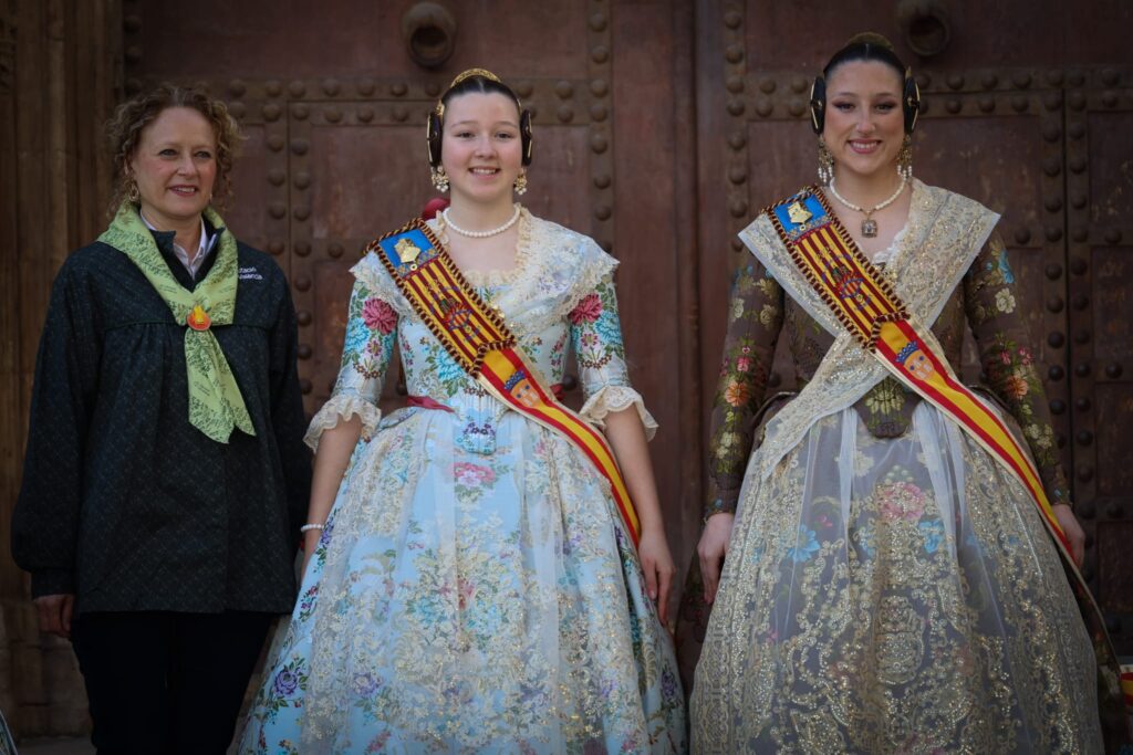 Després de la visita a la Diputació, Andrea Adelantado i Sara Magán, junt amb les seues Corts d’Honor, l’Alcaldessa Amparo Folgado i la Segon Tinent d’alcalde, Amparo Chust, han continuat la jornada amb un recorregut pel centre històric de València. Durant el matí han visitat la Basílica de la Mare de Déu dels Desamparats i s’han acostat també a saludar, al centre de la plaça, la Pirotècnia Alpujarreña, encarregada del dispar del dia a la plaça de l’Ajuntament.