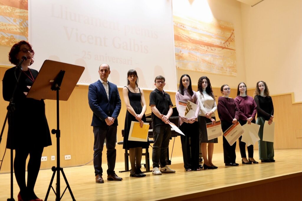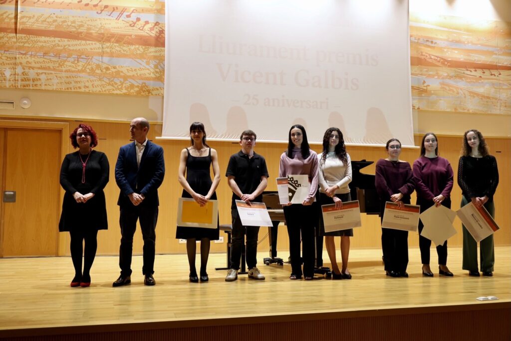 L’Ajuntament de Torrent va celebrar ahir a la vesprada l’acte de lliurament de guardons de la XXV edició dels Premis d’Interpretació Musical Vicent Galbis, un tradicional concurs – se celebra des de fa 25 anys – que busca reconéixer l’excel·lència de l’alumnat del Conservatori Professional de Música de Torrent i fomentar la cultura musical en el nostre municipi. L’esdeveniment va comptar amb la presència de la regidor d’Educació de l’Ajuntament de Torrent, María Fernández, el director del Conservatori, Blas Pi, i quatre vocals del centre musical.
