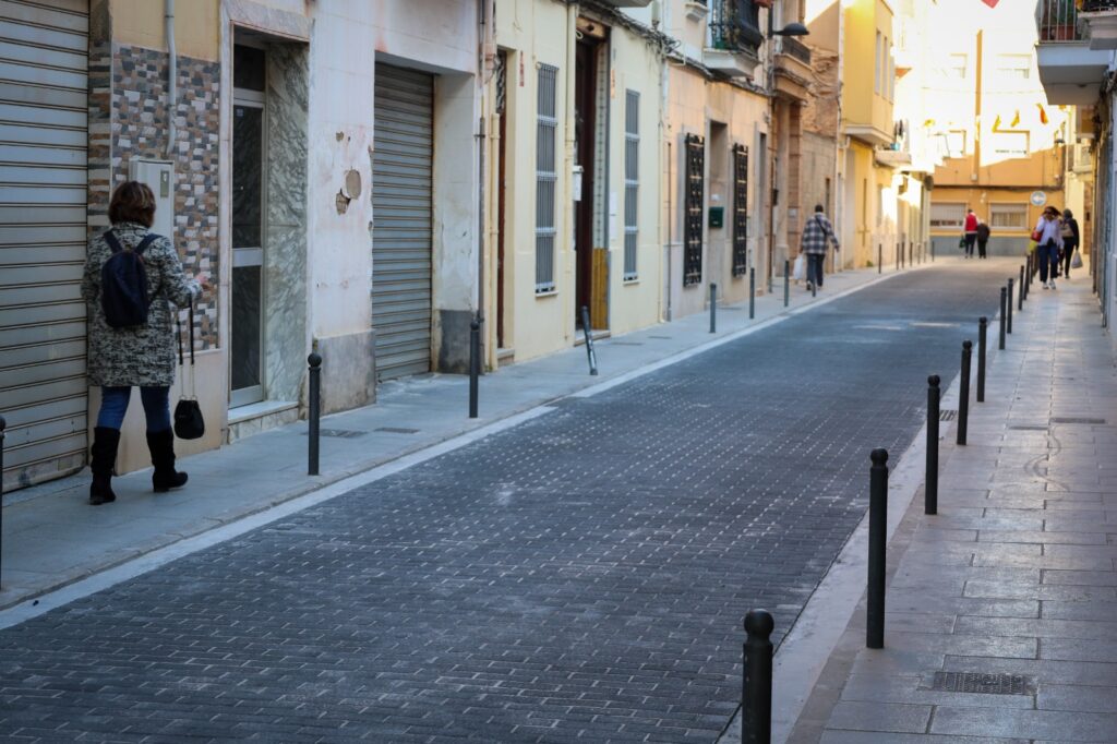 Atès que el model d’adoquí existent estava descatalogat i no era possible reposar-lo parcialment, els tècnics van valorar com a única solució viable la retirada completa del paviment i la seua substitució per un de nou. Esta decisió ha permès dotar el carrer d’un paviment homogeni, més resistent i adequat, garantint així una solució duradora que evite futures reparacions puntuals.