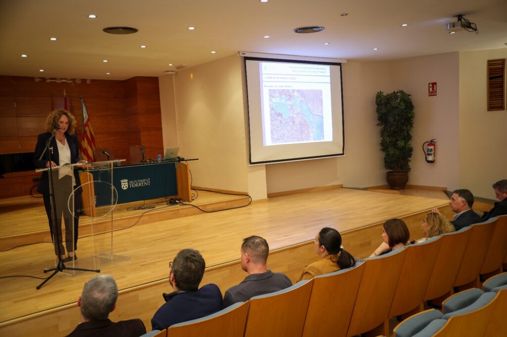Després del regidor, va prendre la paraula, José Antonio Pérez Director Servici Tècnic d’Obra Civil i Infraestructures de l’Ajuntament de Torrent, que va posar el focus en els danys arreplegats des del primer moment, “El que trobem no van ser danys aïllats, sinó alteracions profundes, i per a afrontar-les decidim encarregar un estudi especialitzat que quantificara els volums, mesurara les seccions hidràuliques alterades i avaluara els riscos futurs amb models calibrats.”