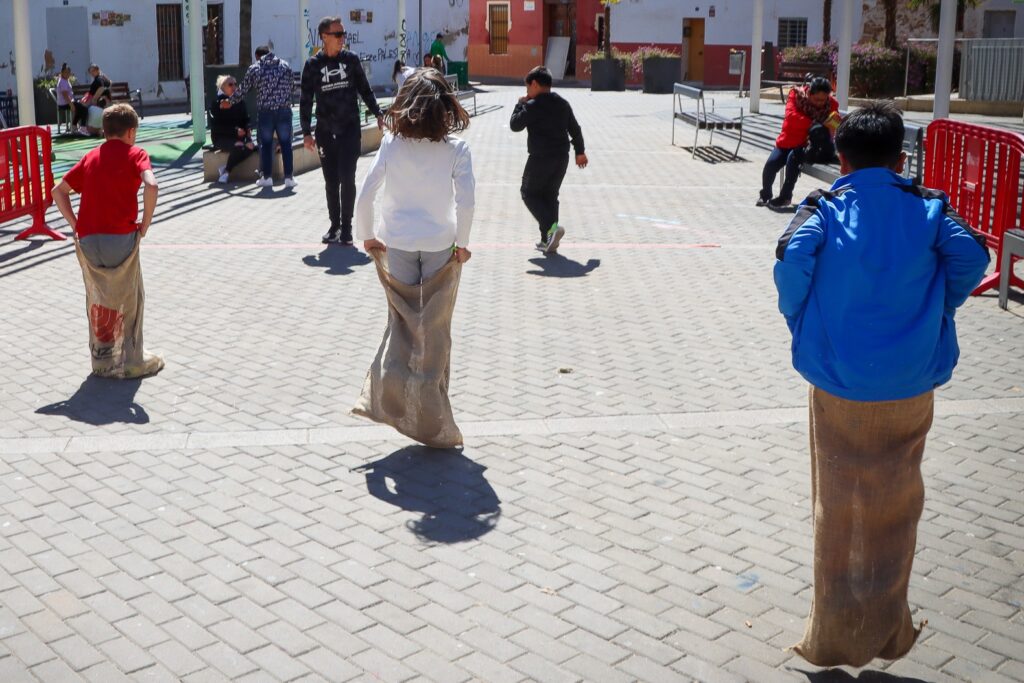 Durante la mañana, el alumnado podrá disfrutar de una amplia variedad de juegos populares valencianos, entre ellos: ‘trompes’, ‘cordes’, ‘mocador’, ‘7 i mig’, ‘xapes’, ‘sambori’, ‘1, 2, 3, pica paret’, ‘sogatira’, ‘birles’ y ‘sacs’, entre otros.