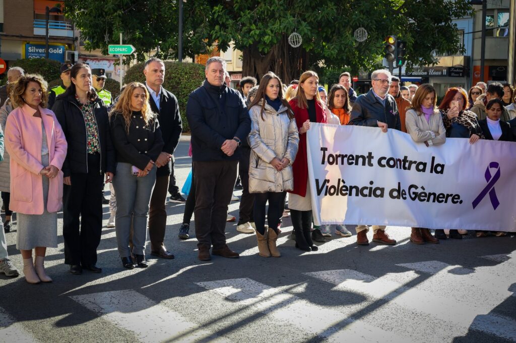 El Ayuntamiento de Torrent ha celebrado esta mañana el acto institucional con motivo del Día Internacional para la Eliminación de la Violencia contra las Mujeres frente a las puertas del consistorio, un encuentro que ha reunido a varios centenares de personas entre representantes institucionales, asociaciones, entidades sociales y ciudadanía.